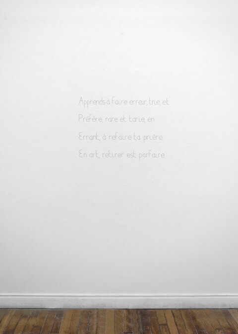 Poèmes en anaphone composés à partir d'aphorismes d'auteurs. Graphite sur mur blanc